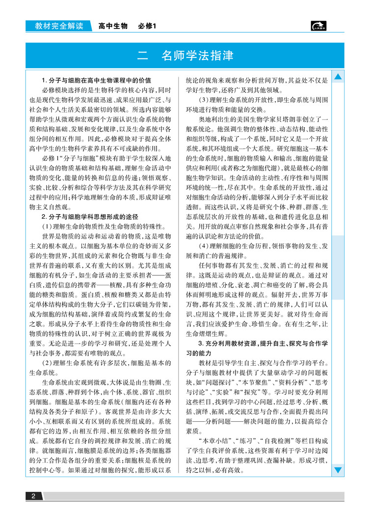 人教生物 必修1 教材完全解读 16版