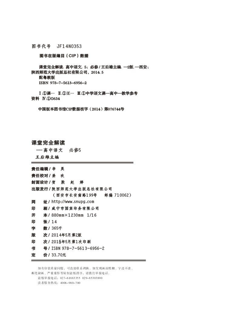 粤教语文 必修5 课堂完全解读 16版