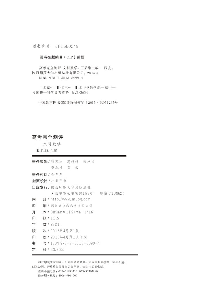 文科数学 高考完全测评(通用课标版)16版