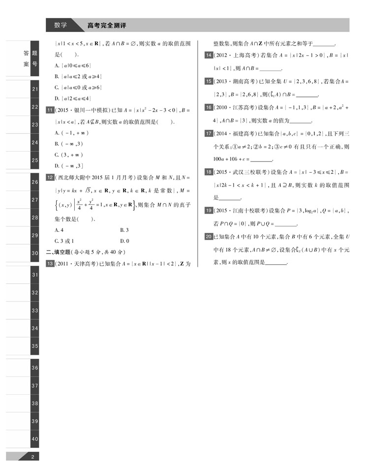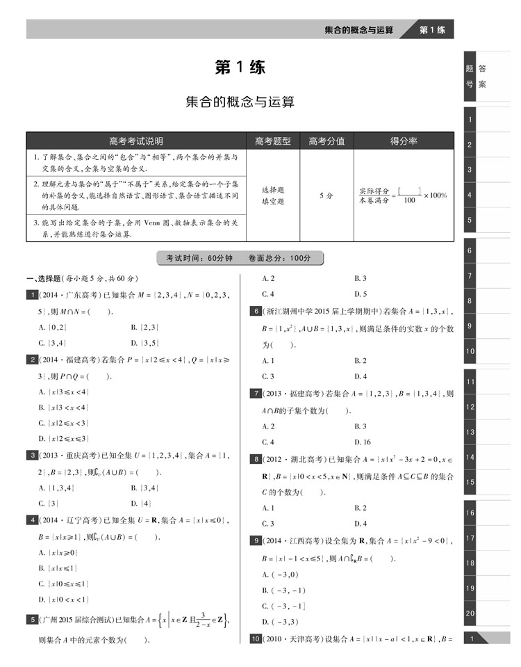文科数学 高考完全测评(通用课标版)16版