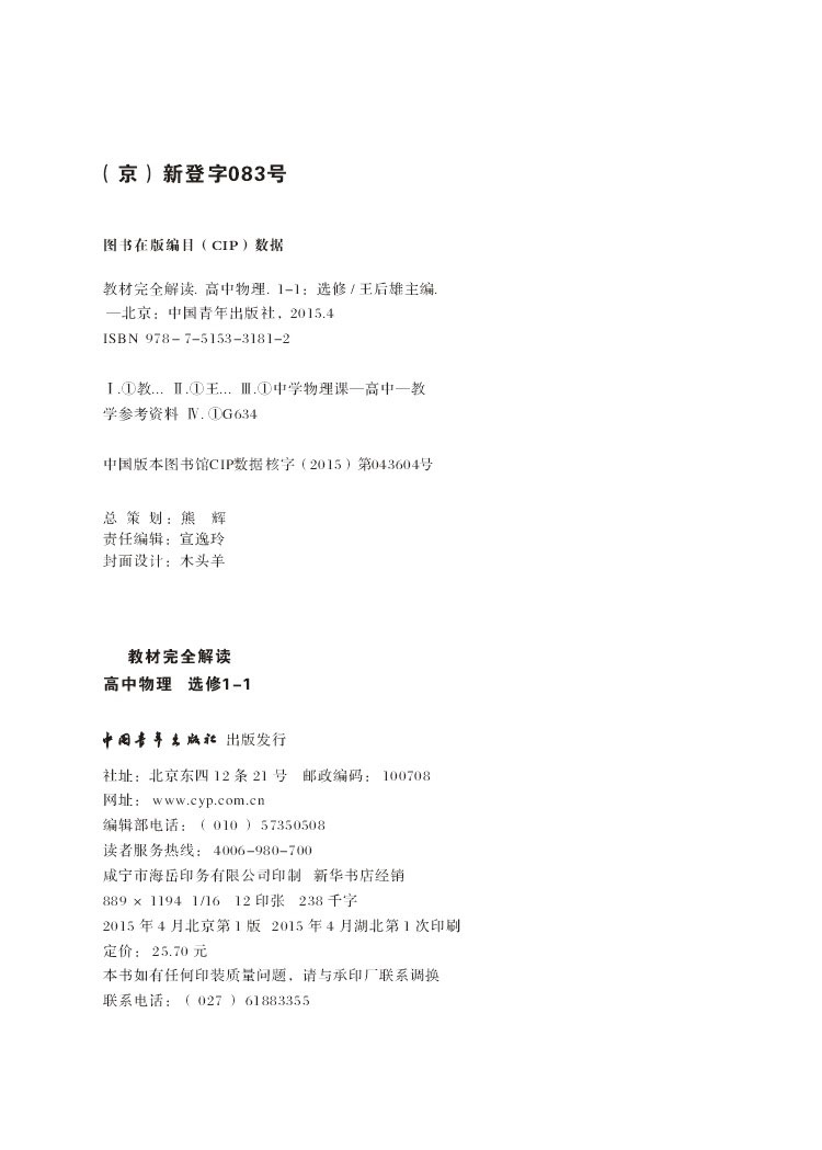 物理 选修1-1 教材完全解读 16版