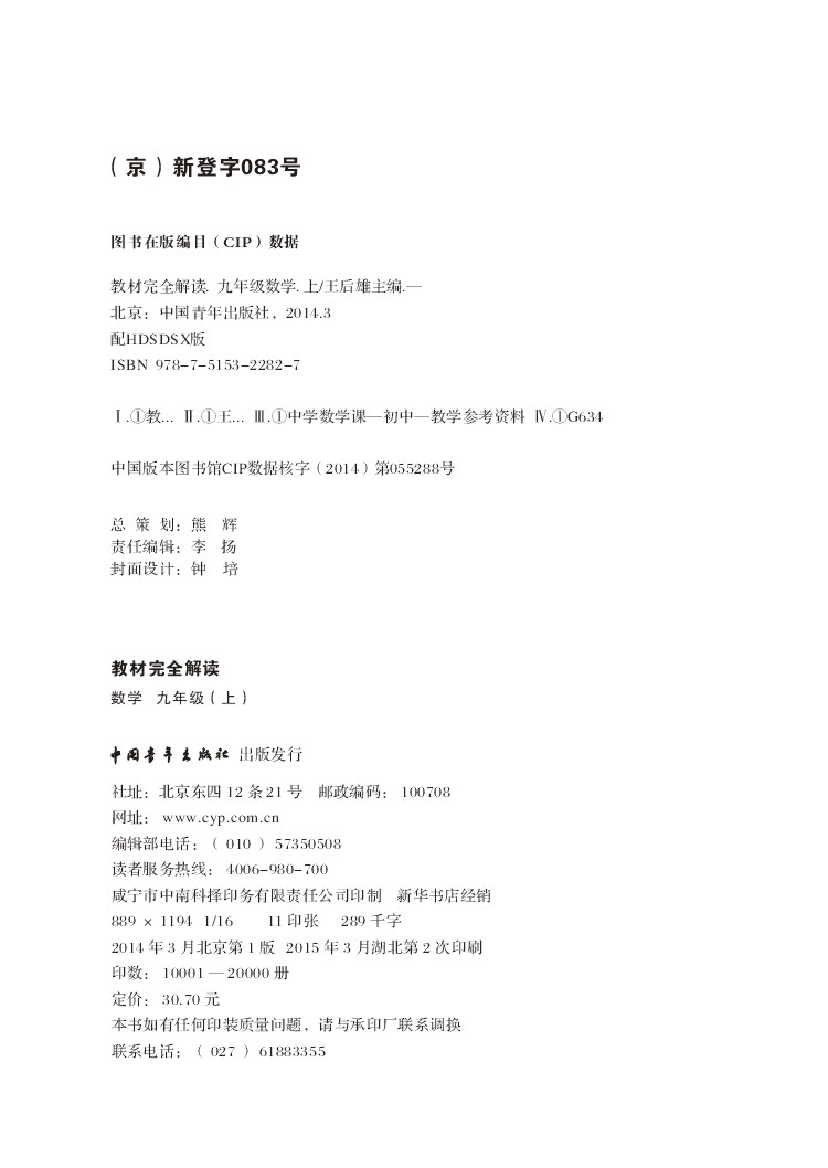 华东师大数学 九年级(上) 教材完全解读 16版