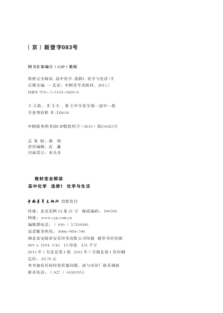 化学 选修1 教材完全解读 16版