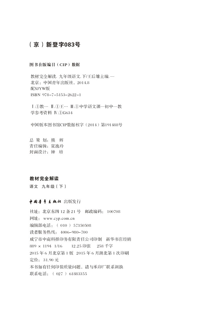 苏教语文 九年级(下) 教材完全解读 16版