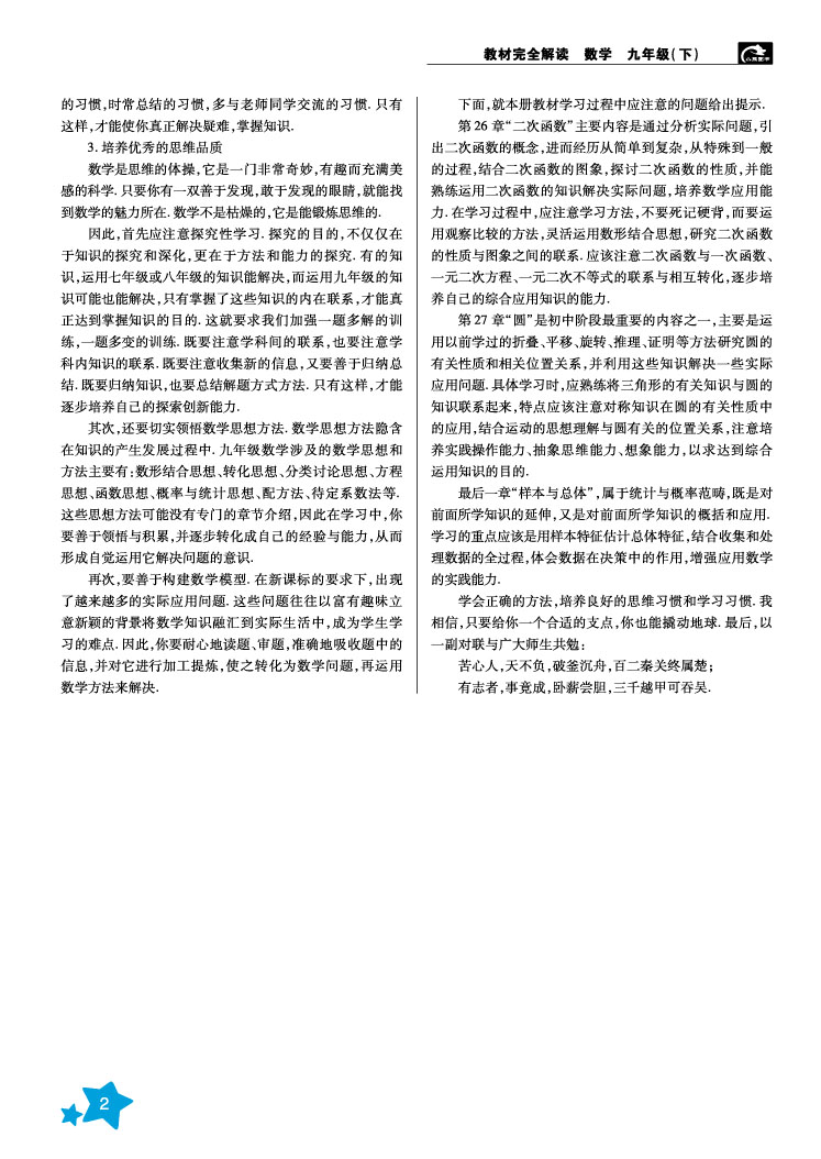 华东师大数学 九年级(下) 教材完全解读 16版