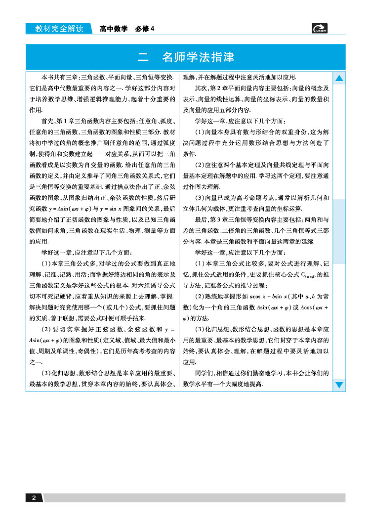 苏教数学 必修4 教材完全解读 16版