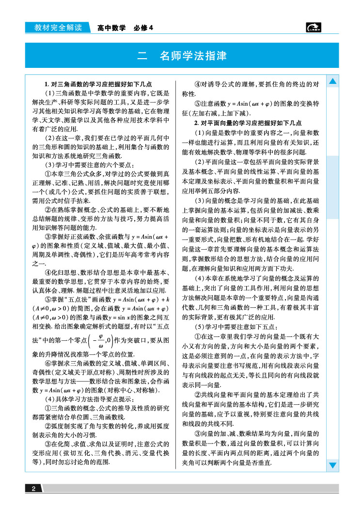 人A数学 必修4 教材完全解读 16版