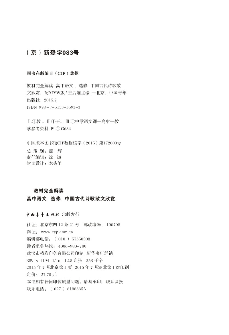 中国古代诗歌散文欣赏 人教语文 教材完全解读 16版