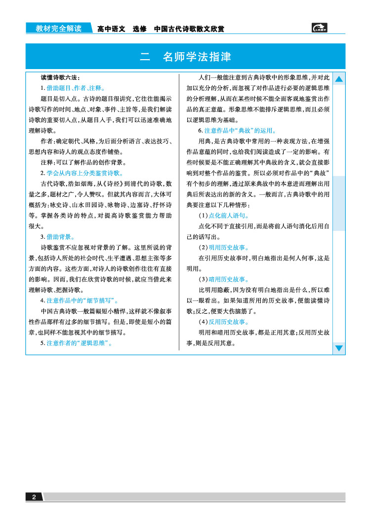 中国古代诗歌散文欣赏 人教语文 教材完全解读 16版