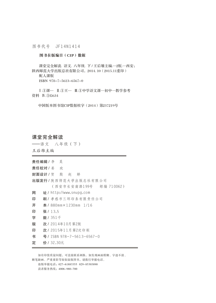 人教语文 八年级(下)课堂完全解读 16版
