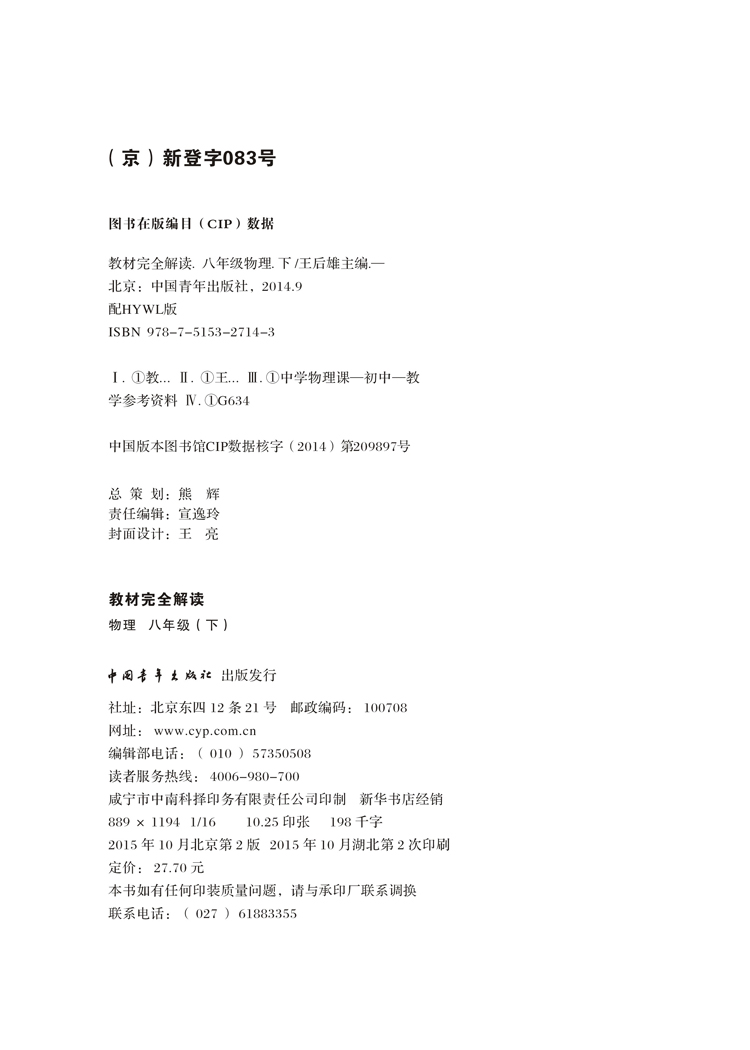 沪粤物理 八年级(下) 教材完全解读 16版