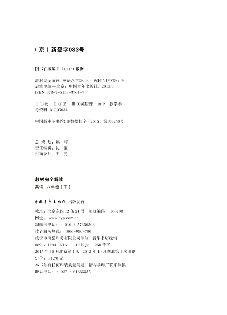 沪教牛津英语 八年级(下) 教材完全解读 16版