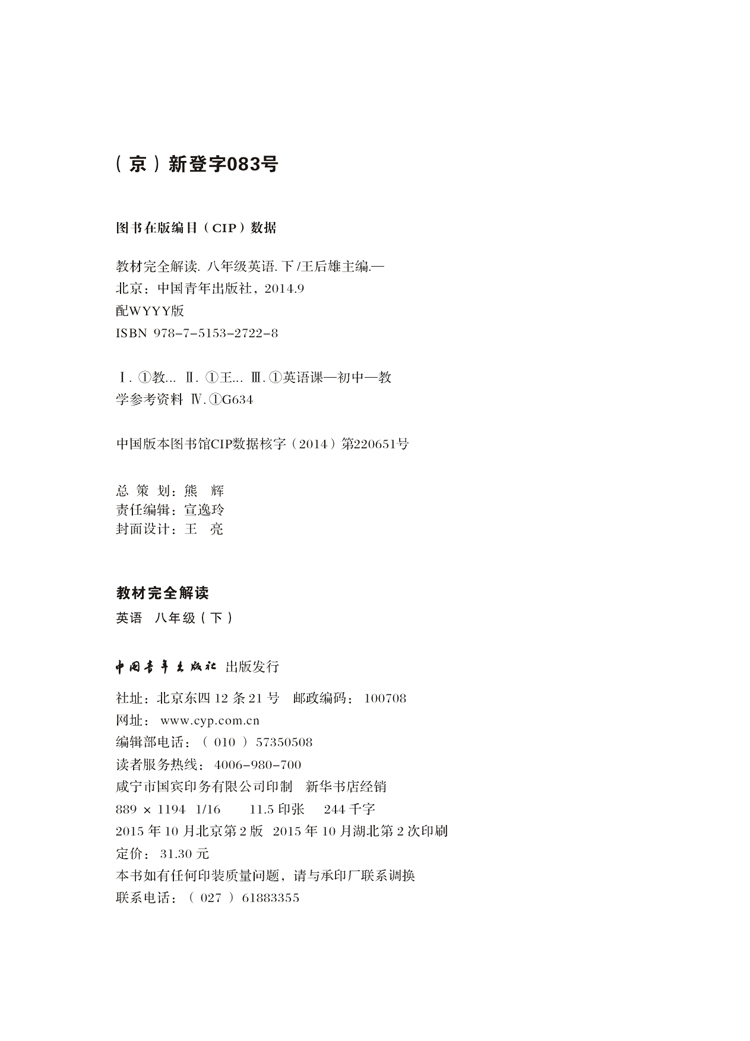 外研英语 八年级(下) 教材完全解读 16版