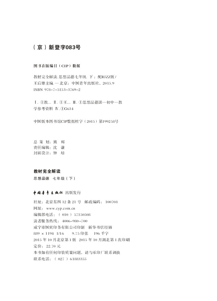 人教政治 七年级(下) 教材完全解读 16版