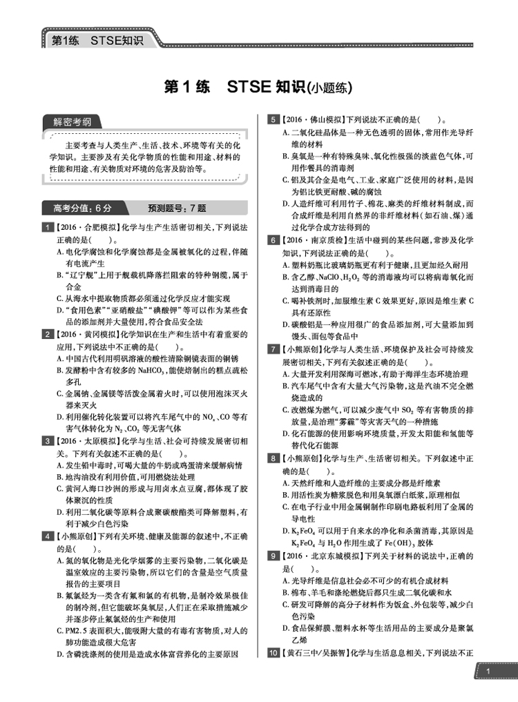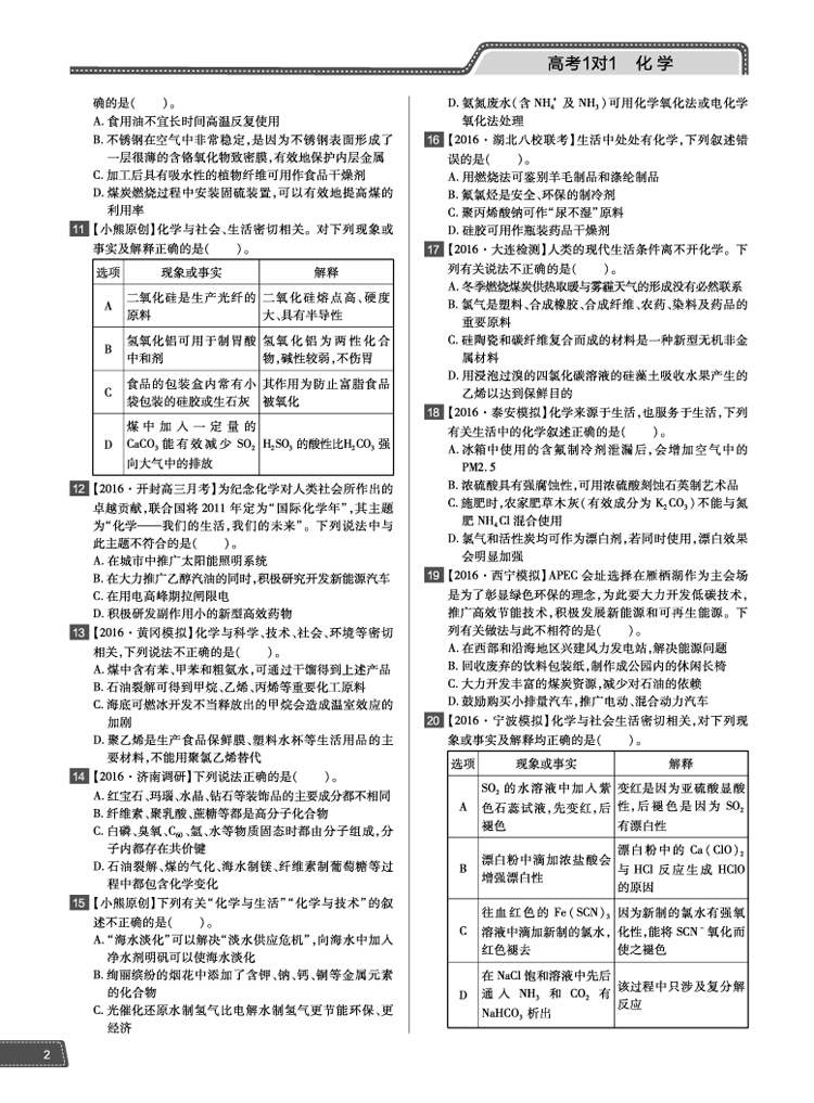 化学 高考1对1 16版