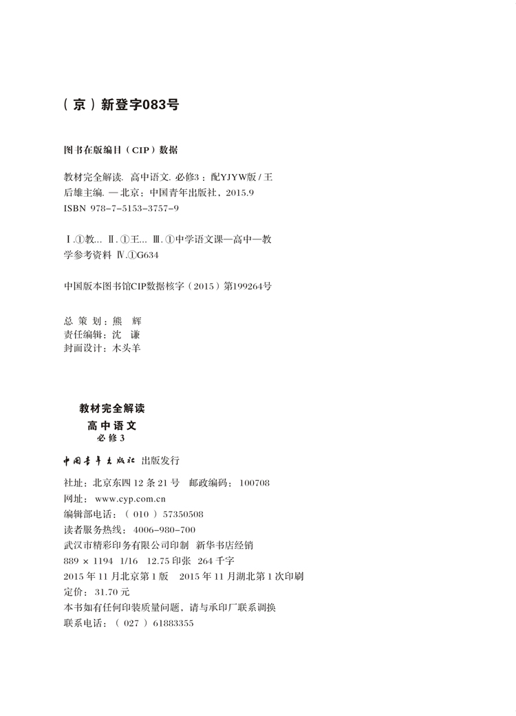粤教语文 必修3 教材完全解读 16版