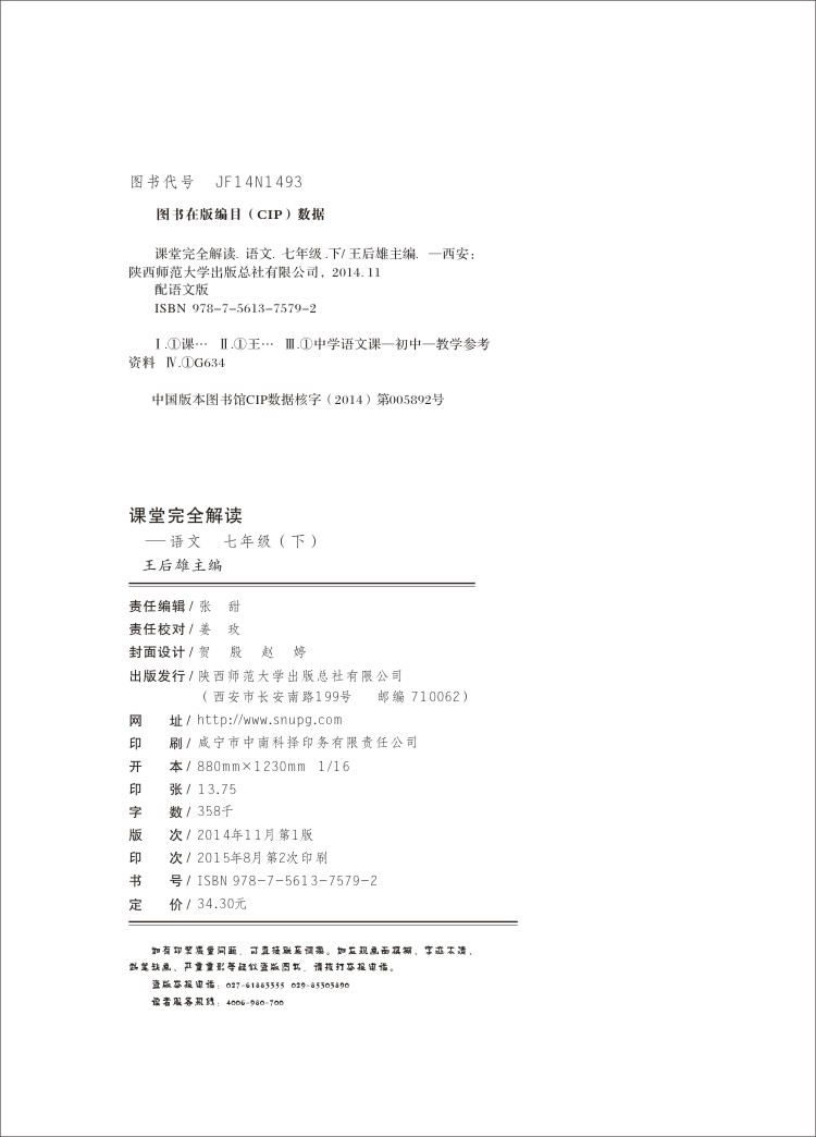 语文版语文 七年级(下)课堂完全解读 16版