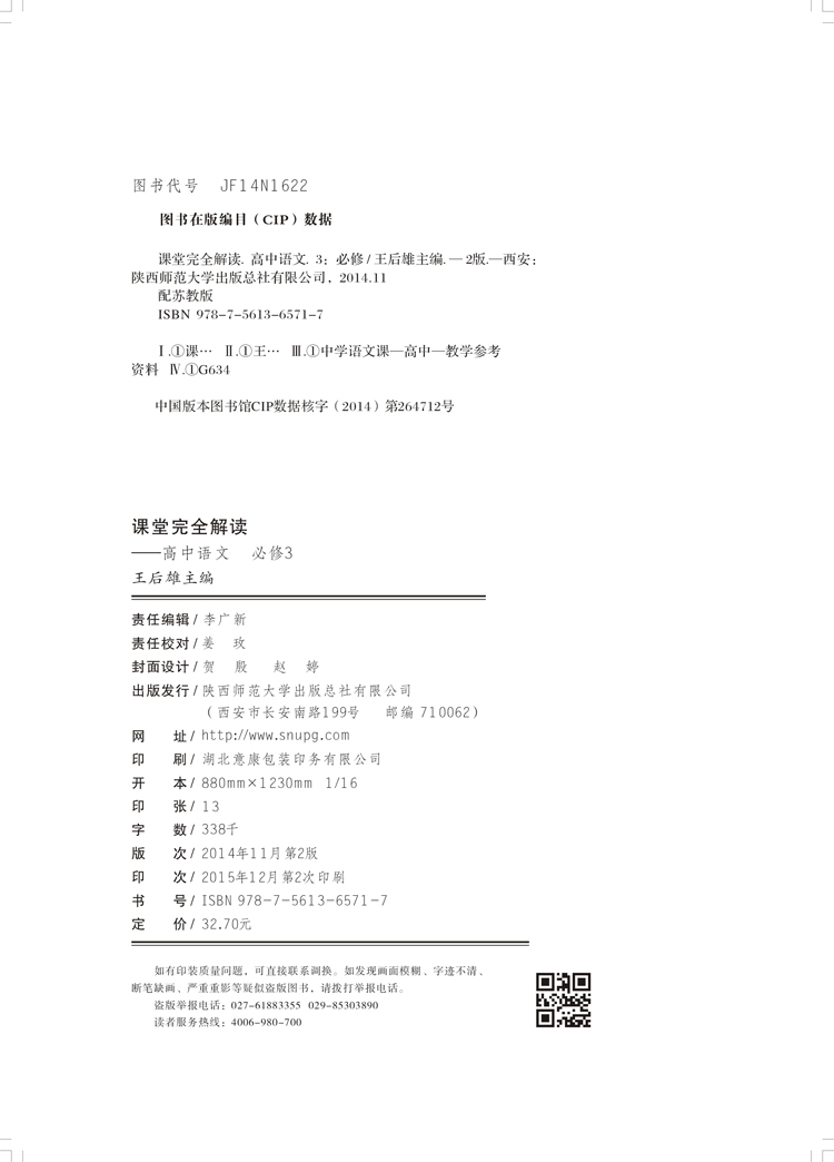 苏教语文 必修3 课堂完全解读 16版