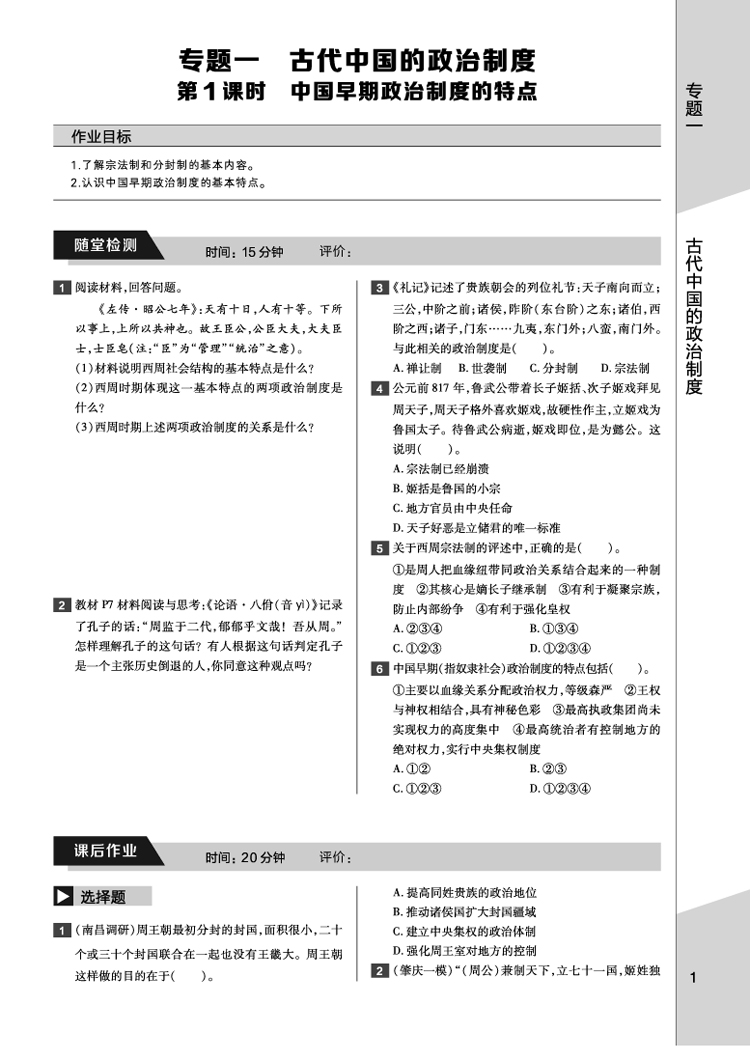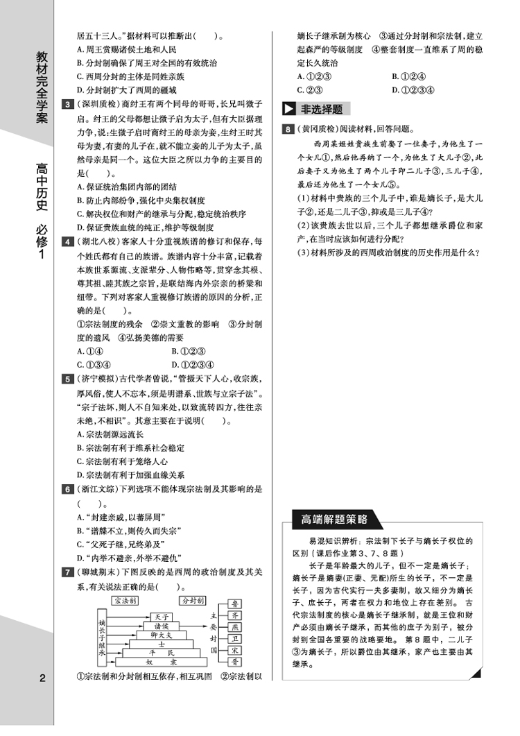 人民历史 必修1 教材完全学案 17版