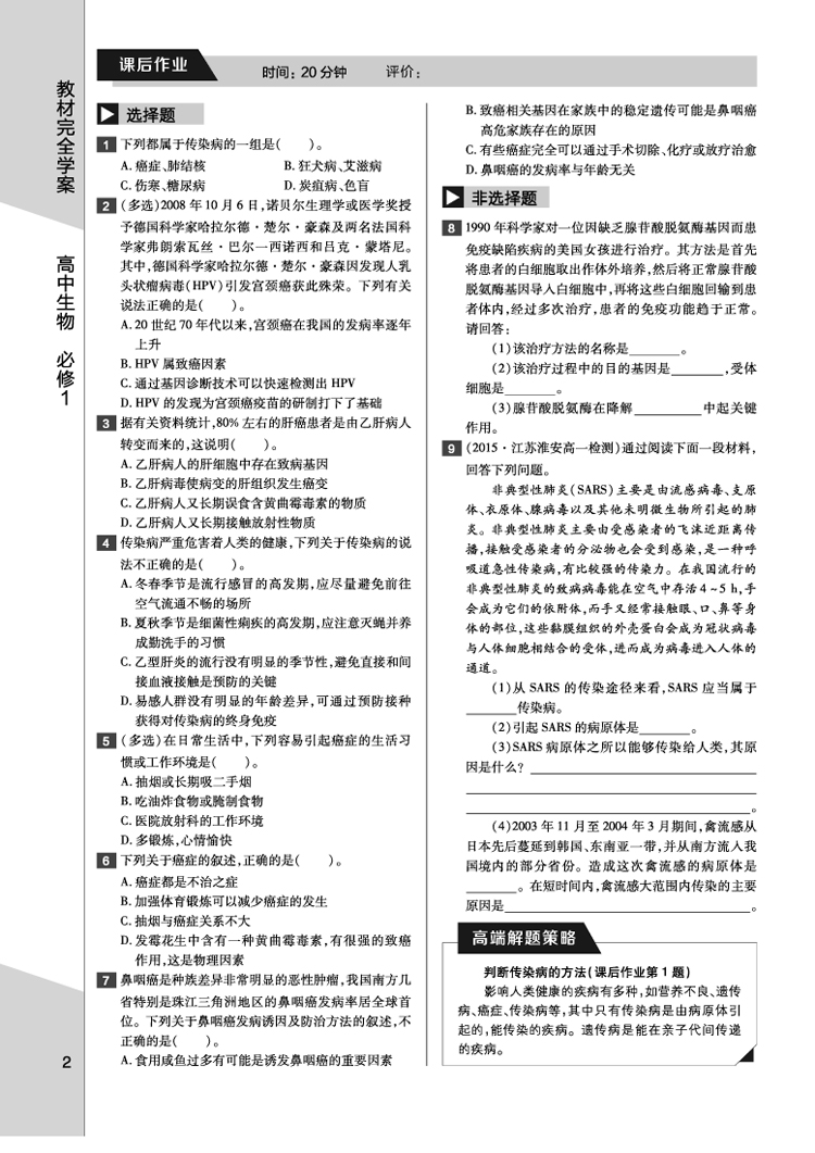 苏教生物 必修1 教材完全学案 17版