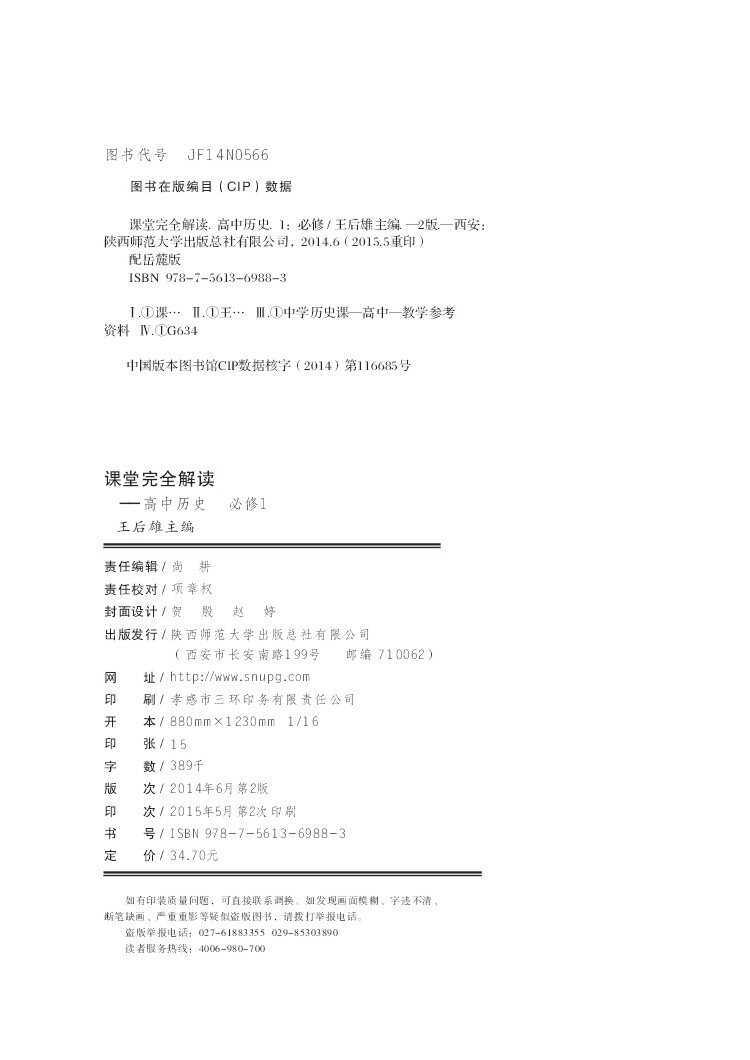 岳麓历史 必修1 课堂完全解读 16版