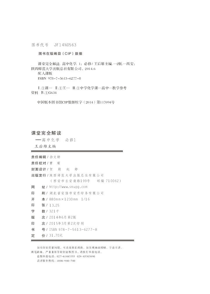 人教化学 必修1 课堂完全解读 16版