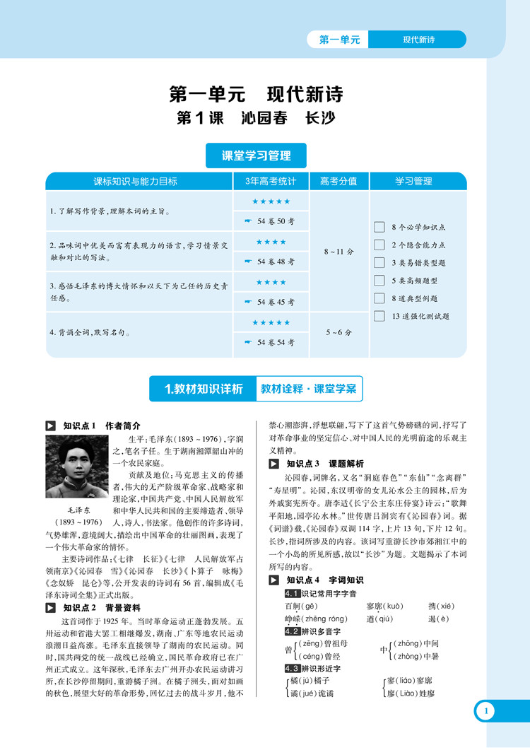 人教语文 必修1 课堂完全解读 16版