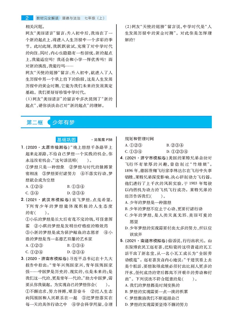 2022版教材完全解读 道德与法治 七年级(上) 配人教版