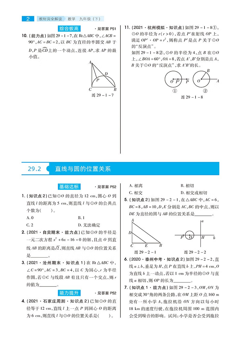 王后雄学案 2022版教材完全解读 数学 九年级(下) 配冀教版 初中同步讲解练习资料正版