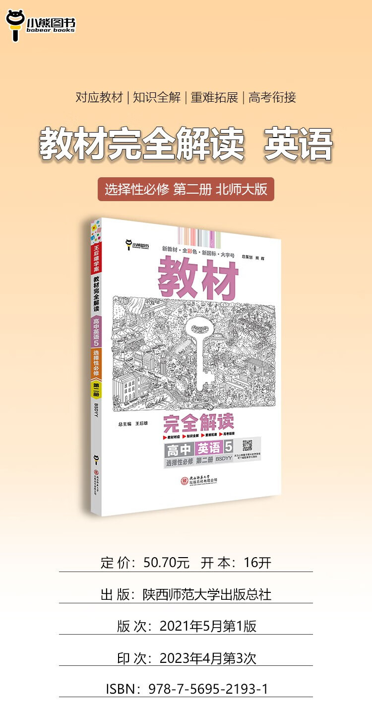 新教材 小熊图书 2024版教材完全解读 高中英语5 选择性必修第二册 配北师大版