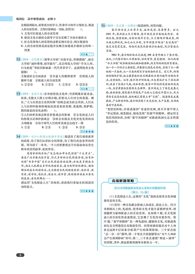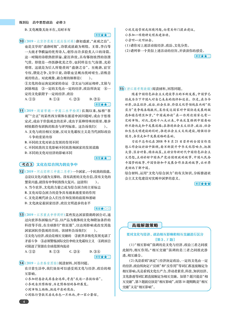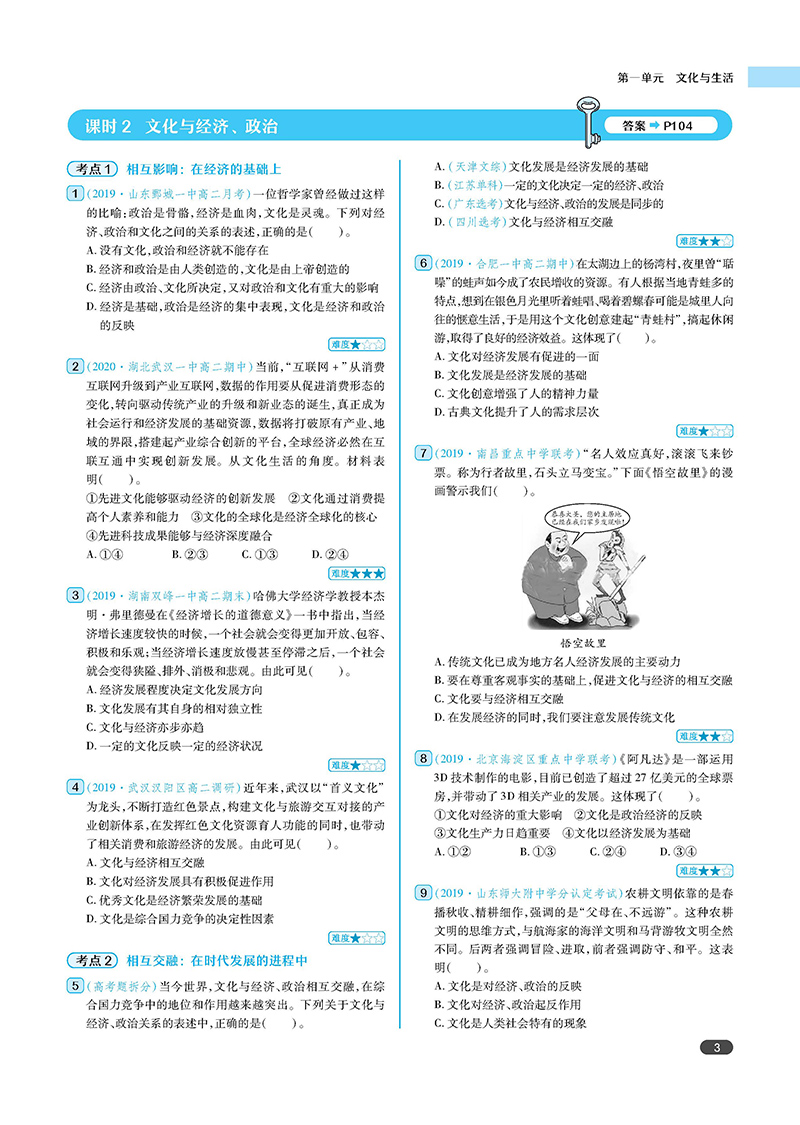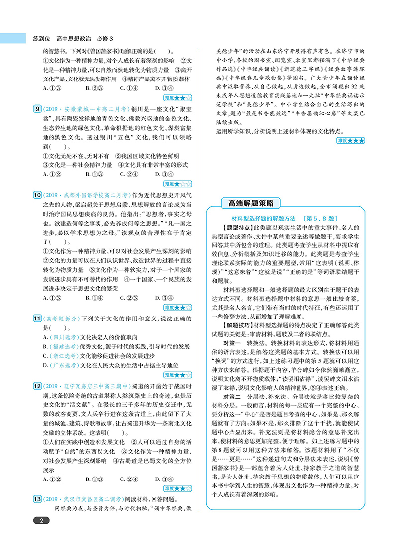 小熊图书 2022版练到位高中思想政治必修3 配人教版 高二教材同步练习用书辅导资料