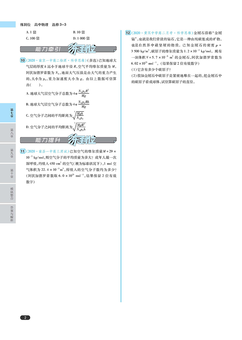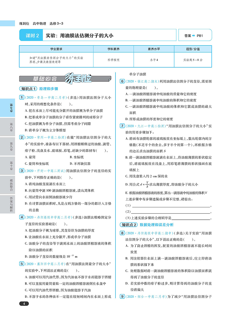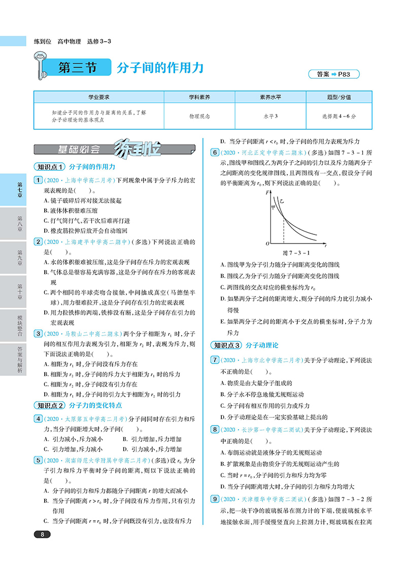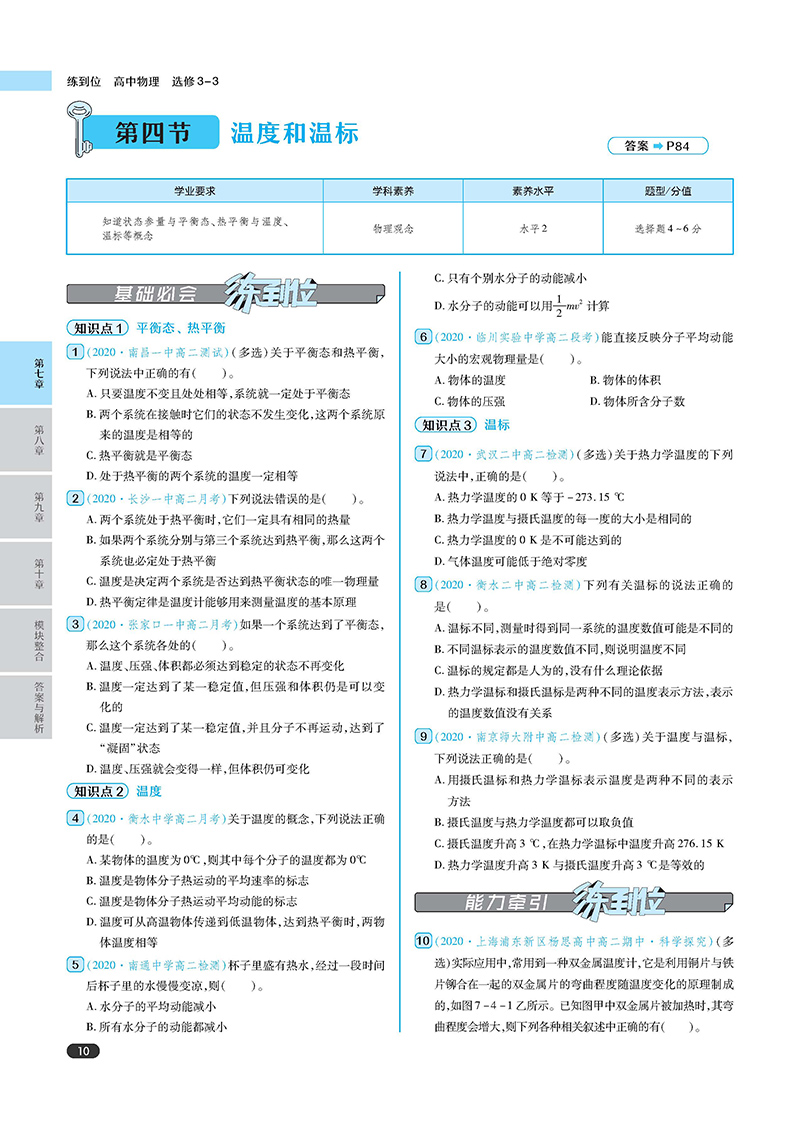 小熊图书 王后雄 2022版练到位 高中物理 选修3-3 高中教材同步练习用书辅导资料