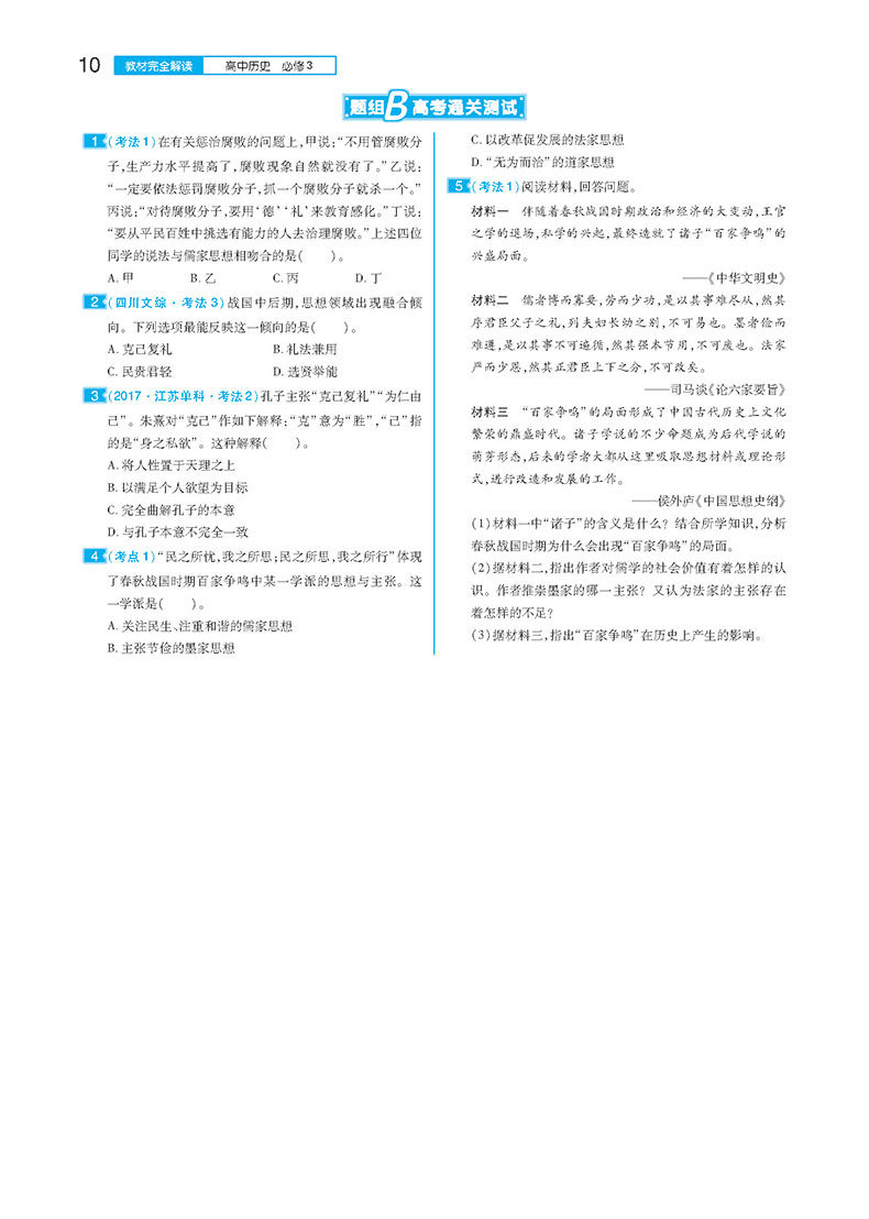 2021版教材完全解读 高中历史 必修3 配人民版RMLS 王后雄学案