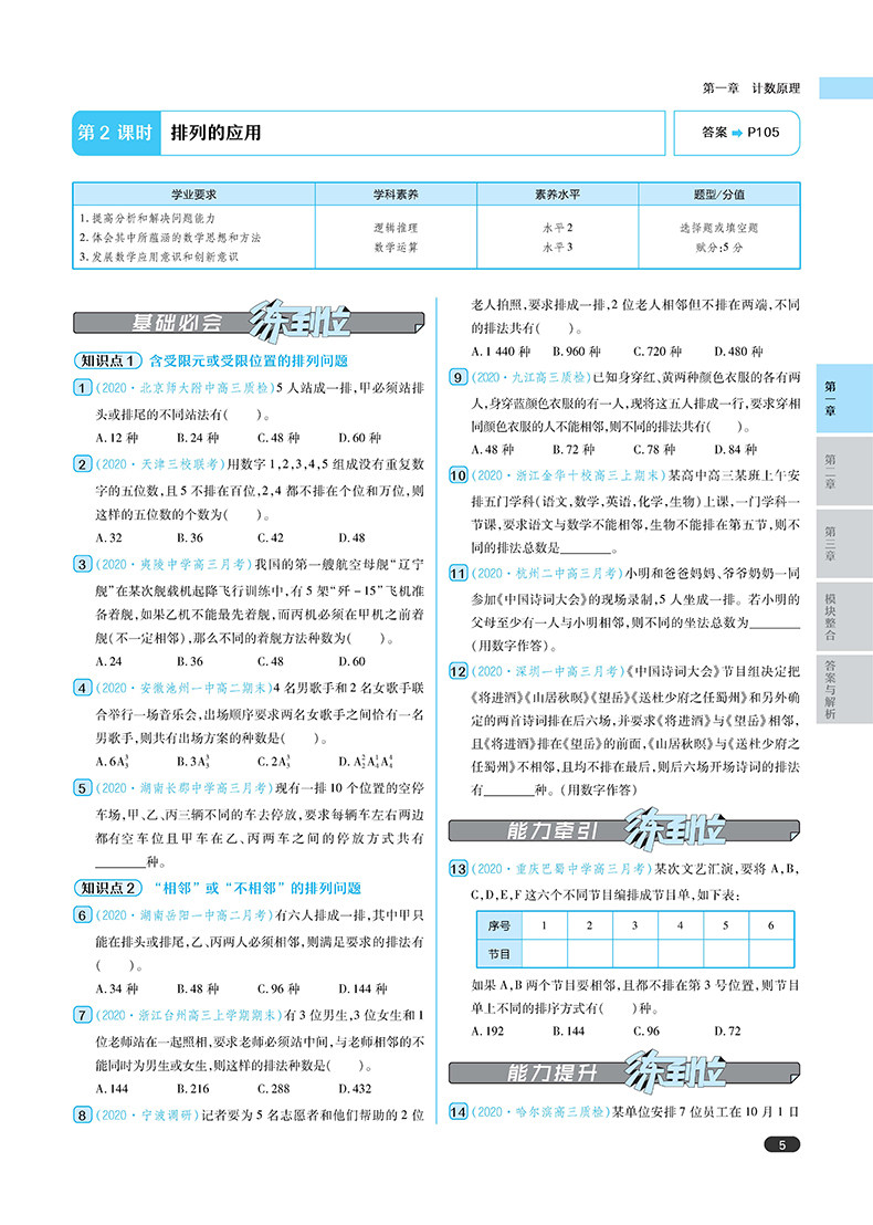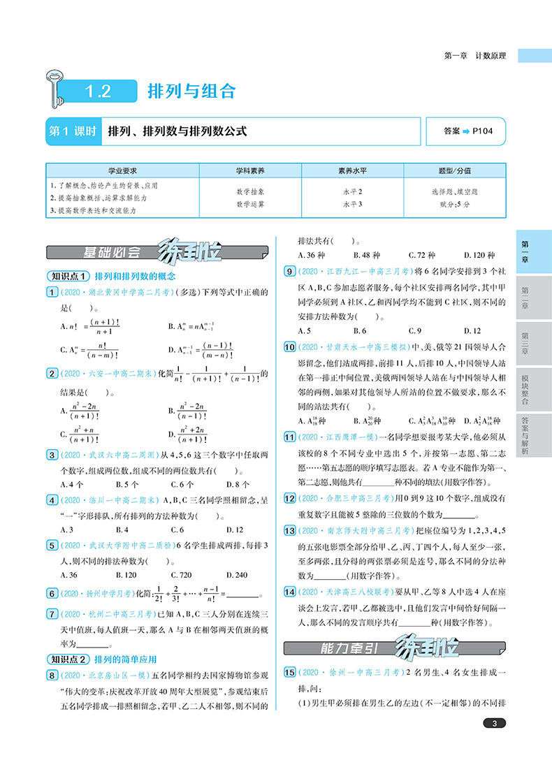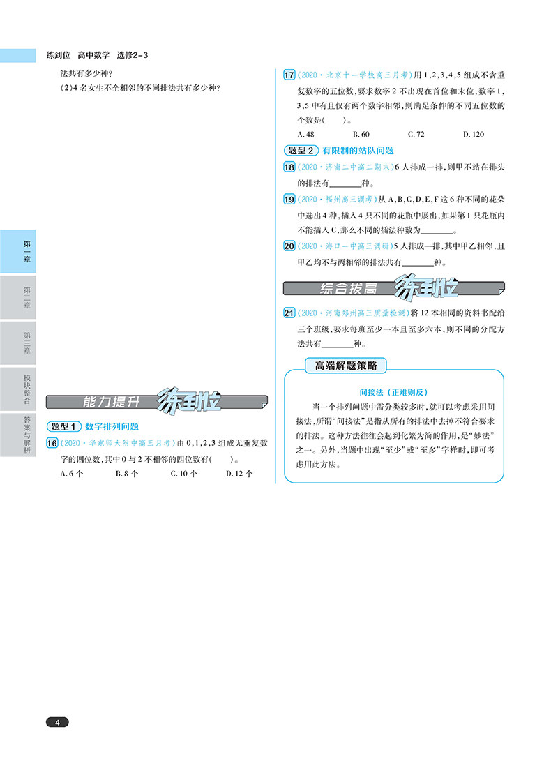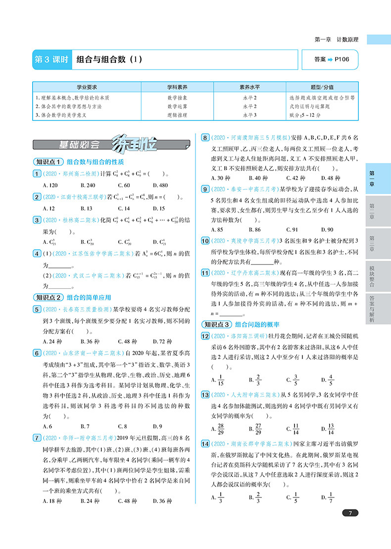 王后雄 2021版练到位 高中数学 选修2-3 高一教材同步练习用书辅导资料