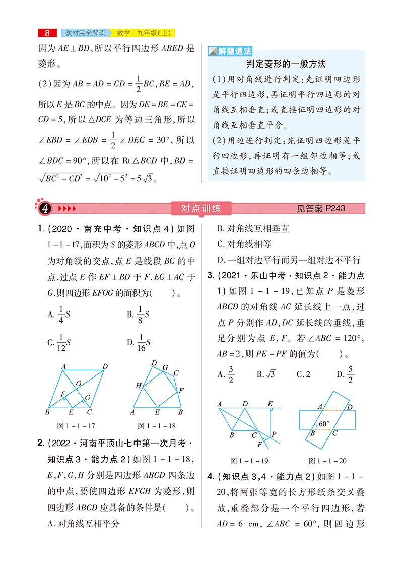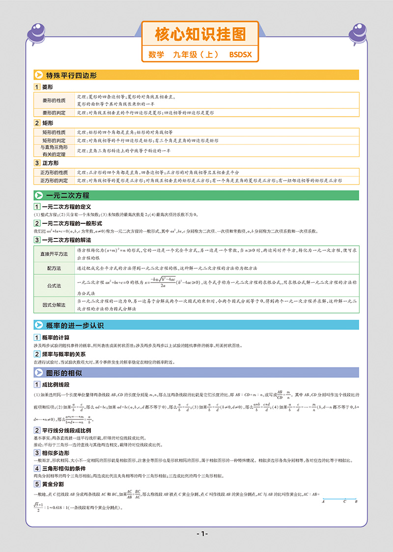 2024版 王后雄学案教材完全解读数学九年级(上)BSDSX配北师大版 中考初中初三数学 王后雄学案 中学同步讲解