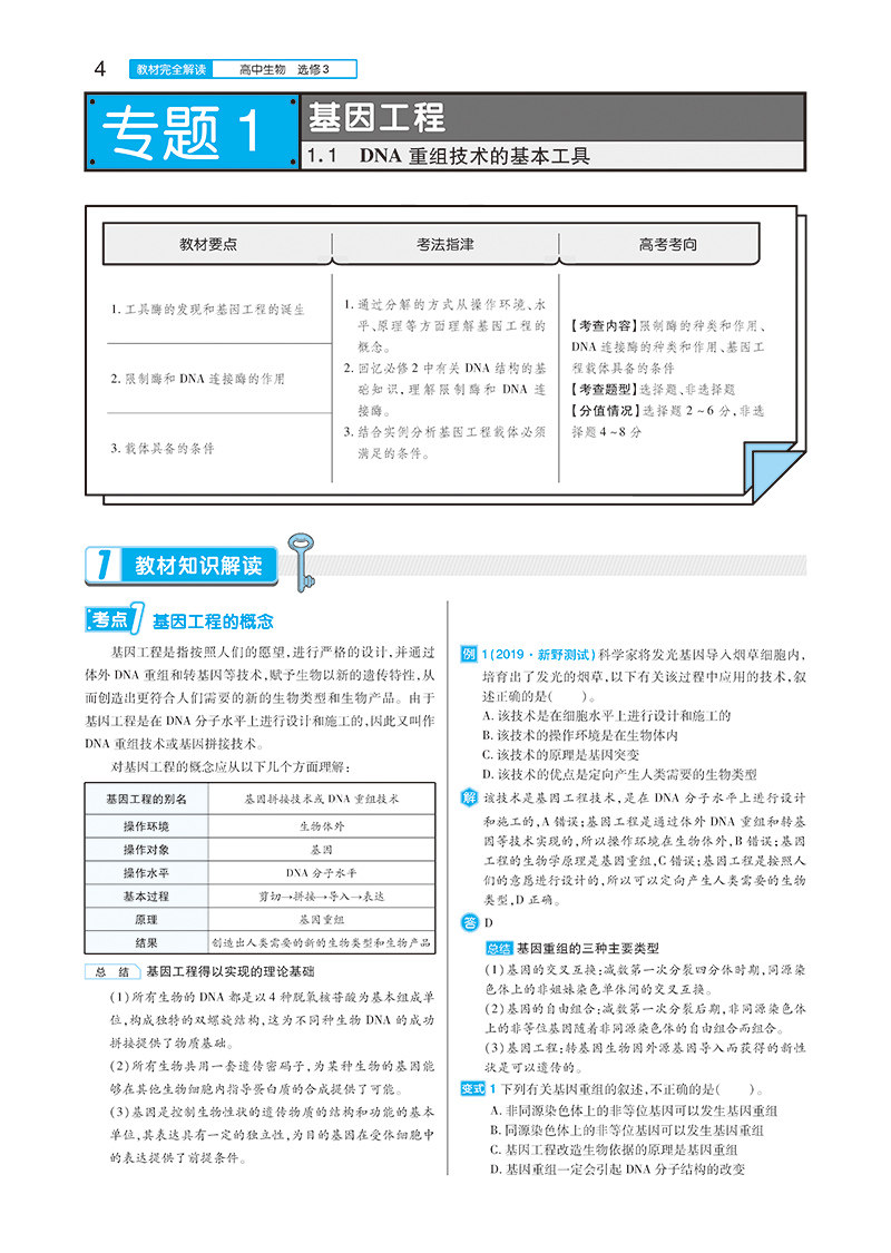 小熊图书 2023 版教材完全解读 高中生物 选修3现代生物科技专题 王后雄学案同步讲解