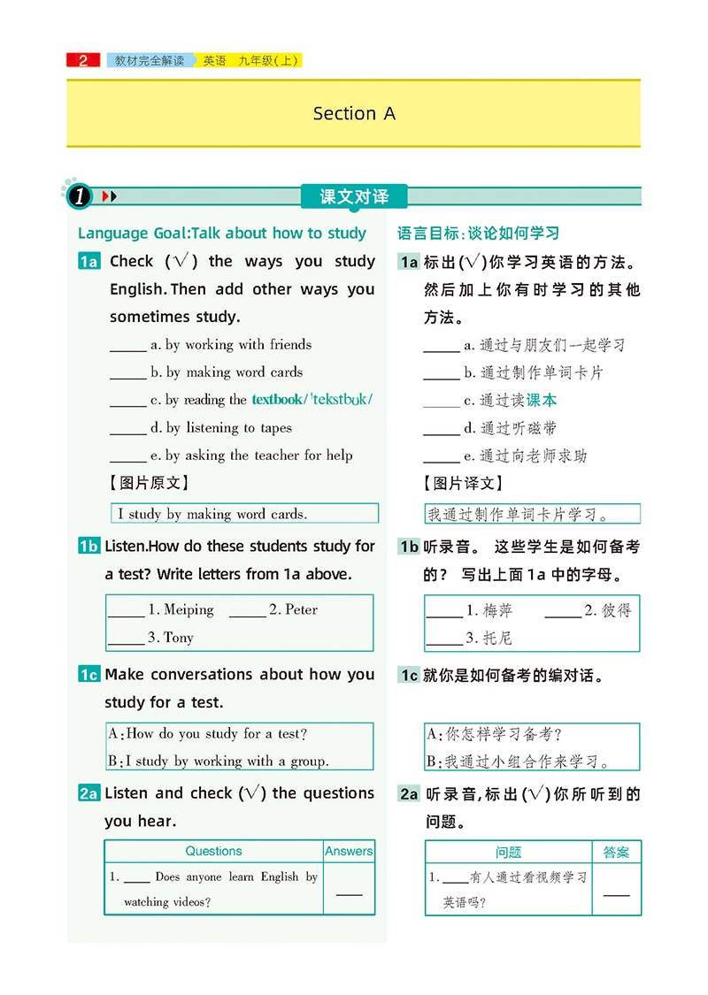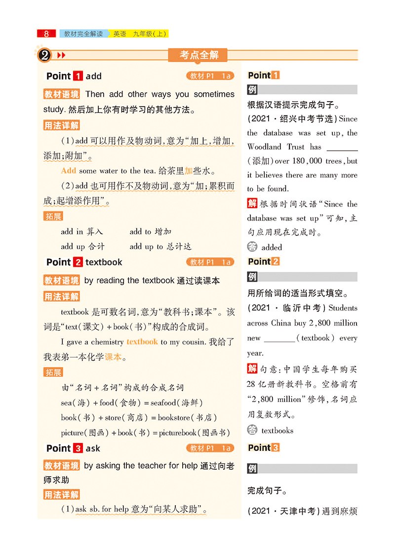 2024王后雄学案 教材完全解读 英语 九年级 (上) RJYY 人教版 初中中考初三英语 王后雄学案 中学同步讲解类教