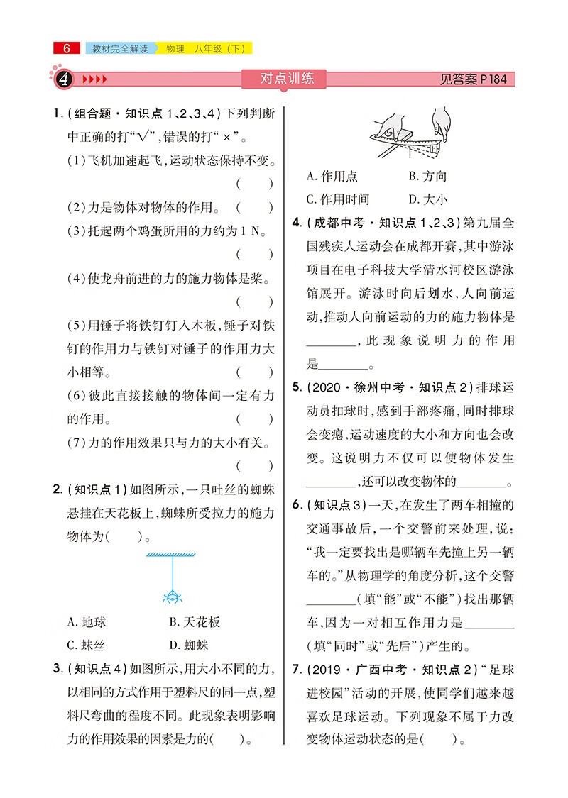 2024版 教材完全解读物理八年级(下)HYWL 配沪粤版 初中初二物理 王后雄学案 中学同步讲解类教辅第一品牌