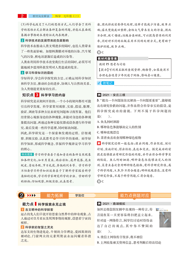 2022版 教材完全解读 科学 七年级 (上) ZJKX 王后雄学案
