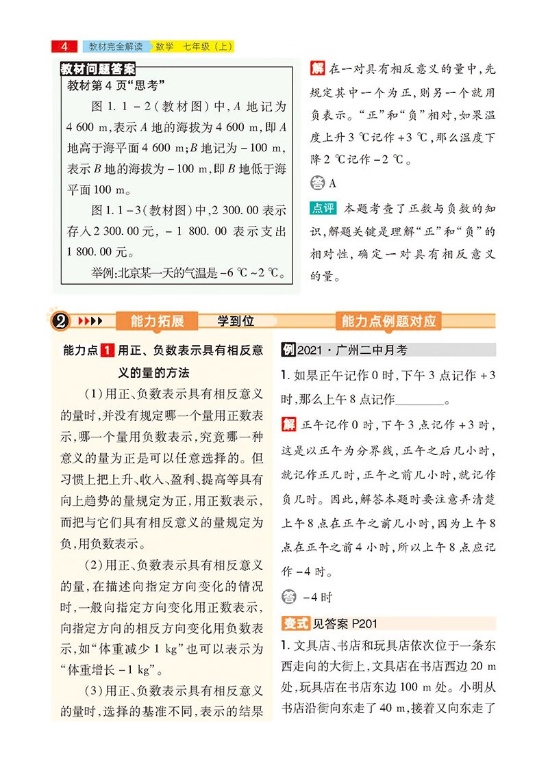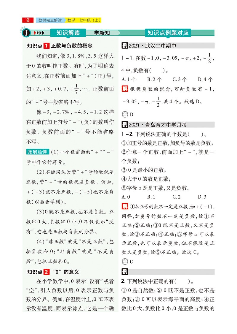 小熊图书 2024教材完全解读 初中数学 七年级上 初一 人教版RJSX 王后雄学案同步讲解