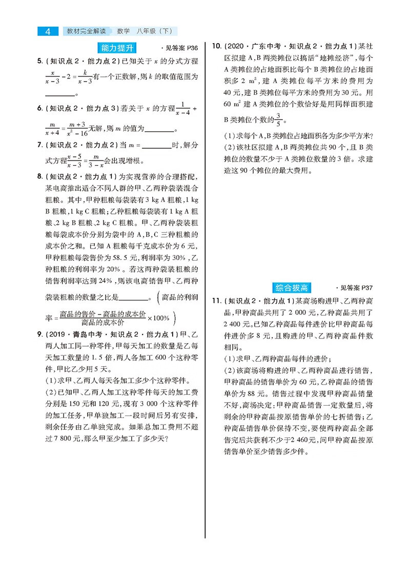 2022版教材完全解读 数学 八年级(下)配华东师大版 HDSDSX 初二数学 王后雄学案 中学同步讲解类教辅第一品牌
