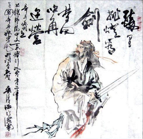 【赏析】 李白有首叫《越中览古》的诗。诗中写道:“越王勾践破吴归,战士还家尽锦衣。宫女好花满春殿,只今惟有鹧鸪飞!”这首七言诗中,有三句写到越王勾践的强盛,最后一句才点出越国的衰败景象,虽然表达的感情显然不同,但在谋篇布局方面又有相似之处。词以两个二、二、二的对句开头,通过具体、生动的描述,表现了多层情意。第一句,只六个字,却用三个连续的、富有特征性的动作,塑造了一个壮士的形象,让读者从那些动作中去体会人物的内心活动,去想象人物所处的环境,意味无穷。为什么要吃酒,而且吃“醉”?既“醉”之后,为什么不去睡觉,而要“挑灯”?“挑”亮了“灯”,为什么不干别的,偏偏抽出宝剑,映着灯光看了又看……?这一连串问题,只要细读全词,就可能作出应有的回答,因而不必说明。“此时无声胜有声”。用什么样的“说明”还能比这无言的动作更有力地展现人物的内心世界呢? “挑灯”的动作又点出了夜景。那位壮士在夜深人静、万籁俱寂之时,思潮汹涌,无法入睡,只好独自吃酒。吃“醉”之后,仍然不能平静,便继之以“挑灯”,又继之以“看剑”。翻来覆去,总算睡着了。而刚一入睡,方才所想的一切,又幻为梦境。“梦”了些什么,也没有明说,却迅速地换上新的镜头:“梦回吹角连营”。壮士好梦初醒,天已破晓,一个军营连着一个军营,响起一片号角声。这号角声,多么富有催人勇往无前的力量啊!而那位壮士,也正好是统领这些军营的将军。于是,他一跃而起,全副披挂,要把他“醉里”、“梦里”所想的一切统统变为现实。 三、四两句,可以不讲对仗,词人也用了偶句。偶句太多,容易显得呆板;可是在这里恰恰相反。两个对仗极工、而又极其雄健的句子,突出地表现了雄壮的军容,表现了将军及士兵们高昂的战斗情绪。“八百里分麾下炙,五十弦翻塞外声”:兵士们欢欣鼓舞,饱餐将军分给的烤牛肉;军中奏起振奋人心的战斗乐曲。牛肉一吃完,就排成整齐的队伍。将军神采奕奕,意气昂扬,“沙场秋点兵”。这个“秋”字下得多好!正当“秋高马壮”的时候,“点兵”出征,预示了战无不胜的前景。 按谱式,《破阵子》是由句法、平仄、韵脚完全相同的两“片”构成的。后片的起头,叫做“过片”,一般的写法是:既要和前片有联系,又要“换意”,从而显示出这是另一段落,形成“岭断云连”的境界。 辛弃疾却往往突破这种限制,《虞美人。别茂嘉十二弟》如此,这首《破阵子》也是如此。“沙场秋点兵”之后,大气磅礴,直贯后片“马作的卢飞快,弓如霹雳弦惊”:将军率领铁骑,快马加鞭,神速奔赴前线,弓弦雷鸣,万箭齐发。虽没作更多的描写,但从“的卢马”的飞驰和“霹雳弦”的巨响中,仿佛看到若干连续出现的画面:敌人纷纷落马;残兵败将,狼狈溃退;将军身先士卒,乘胜追杀,一霎时结束了战斗;凯歌交奏,欢天喜地,旌旗招展。这是一场反击战。那将军是爱国的,但也是追求功名的。一战获胜,功成名就,既“了却君王天下事”,又“赢得生前身后名”,岂不壮哉! 如果到此为止,那真够得上“壮词”。然而在那个被投降派把持朝政的时代,并没有产生真正“壮词”的条件,以上所写,不过是词人孜孜以求的理想而已。词人展开丰富的想象,化身为词里的将军,刚攀上理想的高峰,忽然一落千丈,跌回冷酷的现实,沉痛地慨叹道:“可怜白发生!”白发已生,而收复失地的理想成为泡影。想到自己徒有凌云壮志,而“报国欲死无战场”(借用陆游《陇头水》诗句),便只能在不眠之夜吃酒,只能在“醉里挑灯看剑”,只能在“梦”中驰逐沙场,快意一时。……这处境,的确是“悲哀”的。然而又有谁“可怜”他呢?于是,他写了这首“壮词”,寄给处境同样“可怜”的陈同甫。 |