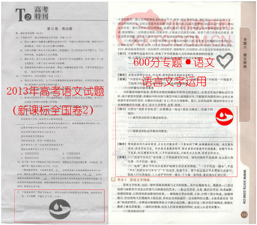 牛X的小熊图书呀,真乃教辅界的考神,所出品《600分专题·语文·语言文字运用》居然押中了2013年高考语文新课标全国卷2的文字运用表达题。