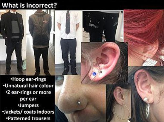 ![]() 近日,英国布拉德福特市翰圣学院152名学生因为穿着不符合新校规而被遣送回家。据悉,大部分学生认为校规过于严苛,而家长们则对此褒贬不一。 据了解,新校规具体到各个方面的各个细节。例如,学生必须把学生证别在勋带上,禁止染发,禁止穿无袖连衣裙、戴环形耳环等。 17岁的乔·怀特(Joe White)就因为没有勋带而被遣送回家。他说上学期的规定不仅灵活还非常人性化,这学期突然变得十分严格,恐怕会对学业产生影响。此外,还有大批学生因没穿对 鞋而无法进入校门。 也有家长表示新规定不可理喻,不通人情。还有一位家长调侃道:“校规是不是也该规定一下内衣的针织密度呢?” 学院领导则表示,近年来学校在学术方面取得了很大成就,该校始终把培养精英作为教学理念。这些规定是为了让学生尽早为进入社会做准备。(实习编译:张艺娜 审稿:朱盈库) |