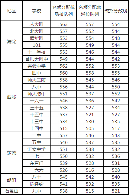 关于名额分配政策我们已经讲了很多了,但是为了大家可以更好的分析,小编将2014北京中考名额分配各城区重点中学录取分数线汇总公布如下: