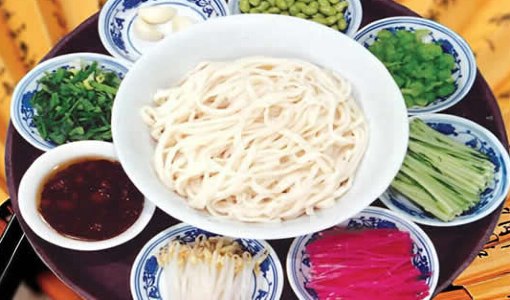 地道的老北京炸酱面精髓都在炸酱上,首先选用的黄酱一定要好,要采用正规名牌厂家生产的黄酱,其次是炸酱时火候和配料要掌握好,火候要均匀,炸酱的配比一定要合适,肉丁肥瘦兼有,黄酱不能放得太多,炸出来的酱香喷喷。菜码有豆芽、芹菜、青豆儿、黄瓜丝、心里美萝卜丝、白菜丝、青蒜、大蒜8样,吃起来甭提多么爽了。 ![]() (三)涮羊肉