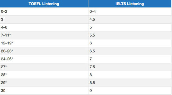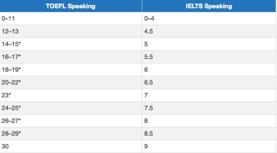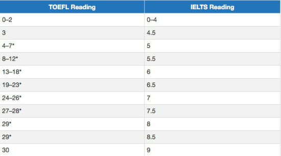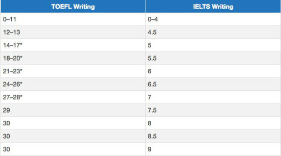 ![]() 托福写作及雅思写作分数转化表