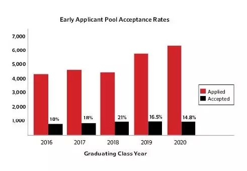 每年的12月,都是美国大学早申请(ED)放榜的第一轮高潮,相信很多同学都会陆陆续续收到来自各所美国大学的offer,一般情况下,常青藤学校的录取都是在12月出结果。 ![]() 到目前为止,已经有一部分常青藤学校公布了2016年申请季提前申请的数据。 ![]() 据The Harward Crimson表示,从去年已很低的16.5%的早申请录取率上又下降了2.3个百分点,这是自2011年采用提前申请政策(early action program)以来录取比率最低的一次。 ![]() 这一批提前确认录取的学生中,亚裔比例为24.2%,比去年比例增长了1.5%;非洲裔和拉美裔学生的提前录取率从去年的10.3%和11.4% 降到了今年的9.4%和9.6%。 而与之相反的是,近年来,布朗大学ED的录取比例整体呈上升趋势。相比今年22.1%的ED录取率来说,2019届和2018届的提前录取率分别为20%、18.9%。 ![]() 那么这其中到底有多少中国学生常青藤的早申请(ED)相中了呢?由于涉及国家种族等敏感数据的信息,任何美国大学都不会公布此类具体信息。我们只能根据各大留学机构和国际学校已经公布的喜报进行初步的统计: 哥伦比亚大学:6 康奈尔:16 哈佛:1 耶鲁:1 布朗:2 宾夕法尼亚:1 (以上数字均来自各大留学机构以及各类国际学校在网站或微信订阅号上已经公布的录取结果,统计只针对美国本科的录取结果) 尽管早申请(ED)的录取率已经远远高于常规录取率,但是这凤毛麟角的数字还是让人唏嘘:想进常春藤大学的本科,可不光是千军万马过独木桥的难度,不下一番苦功是不行的。 |