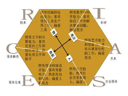 高考填报志愿从某种程度上来说,是我们职业生涯的起点,有时会影响人一生从事的职业。高三学习的紧迫性、对高考分数的过分看重使得高三学生们无暇去思考自己真正的兴趣和优势,中学也往往不重视引导学生去探索自己的职业兴趣,所以不了解自己职业兴趣的同学比比皆是。这也直接导致填报志愿的盲目性。杭州二十一世纪人才评价培训中心曾对在浙江的高校,如浙大大学、浙江工业大学、浙江工商大学、宁波大学等十几所大学做过志愿填报的调查。调查结果显示,在高考填报志愿时,只有31%的学子是根据自己的兴趣来选择的,26%的大学生所学专业是被调剂的,18%的学子是因为大家都说热门才填了现在所学的专业,12%的大学生是由父母安排的,9%的大学生是因为考虑到就业容易而填报的,4%的大学生是乱填的。这就为很多大学生毕业后找不到理想工作埋下了隐患,某种程度上这也是导致大学生学不好、学不进而退学的重要原因。 研究一下古今中外成功人士的成长轨迹。你会发现,成功的人不一定是最优秀的人,也不一定是最幸运的人,更不一定是最聪明的人,但一定是找到最适合自己位置的人。苹果前任总裁史蒂夫?乔布斯(Steve.Jobs)在斯坦福大学毕业典礼上致辞:“你的内心与直觉知道你真正想成为什么样的人,任何其他事物都是次要的。”要想使自己成为一个最好的你,就应该根据自己的实际情况,做出最佳选择。 笔者认为对高中毕业生而言,选择专业时最重要的是要分析自己的兴趣,众多国内外研究机构的研究结果显示:如一个人对某件事、某种工作有兴趣,就能发挥其全部才能的80%~90%,并能长时间保持高效而不知疲惫;反之,如果他对某事没有兴趣,则只能发挥其全部才能的20%~30%,而且还很容易感到疲倦,没有成就感。因为兴趣是学习的驱动力,如果选择符合自己兴趣的专业,可以提高学习的积极性,使学习成为乐趣。所以,我们进行专业选择时,最好结合自己的学科兴趣,重点了解一下自己潜在的兴趣。 当然,这里指的兴趣分析主要是分析职业兴趣的倾向,职业兴趣指的是个体对不同类型的工作、活动的心理偏好程度,说明的是心理能量的具体指向。我们常用霍兰德职业兴趣测试来分析自己的职业兴趣,它由美国著名职业指导专家霍兰德编制,主要用于确定受测者的职业兴趣倾向,并指导受测者选择适合自身职业兴趣的专业发展方向和职业发展方向。霍兰德认为人的行为表现是由人格类型和其所处的环境相互作用决定的,人格与职业环境的匹配度是形成职业满意度、成就感的基础,如果一个人的人格类型与职业环境类型属于同一个类型,那么他的职业满意度和成就感就会高于普通人。所以他把大多数人区分为6种人格类型,并有6种相应的环境类型。霍兰德提出的6种基本职业类型为:现实型R、研究型I、艺术型A、社会型S、企业型E、常规型C(如下图所示)。 ![]() 霍兰德职业类型示意图 结合职业兴趣和学科兴趣,外向的人更适合选择能够充分发挥自己行动能力和积极性的专业,例如工商管理类、法律类、经济类、市场营销类等;内向的人更适合选择能够发挥自己的计划性、敏感性、逻辑性的专业,例如科研类、软件技术类、计算机类、审计、会计等。下面举一个实例来说明一下霍兰德职业兴趣测试: 比如面对同一个“葡萄”,六种类型的人会如何思考这个水果? 现实型:这种“葡萄”要栽种得好,需要哪种土质、如何培育? 研究型:“葡萄”的营养价值如何?它为什么有的是红色,有的是绿色? 艺术型:“葡萄”的外型、色泽非常得漂亮,像一件艺术品一样,给它取一个响亮的名字。 社会型:我真想和朋友一起分享这些美味的“葡萄”! 企业型:“葡萄”的价格是越稀少越昂贵,我如何控制市场? 常规型:“葡萄”多少钱?这么贵,我们家几个人需要花多少钱,“葡萄”可以保存几天? 富兰克林说“宝贝放错地方就是废物”,每种职业类型的人,既有自己独特的优势,也有自己的劣势,只有找到最适合自己的专业,才能扬长避短,发挥自己的优势。 下面我们着重从共同特征、性格特点、典型职业、专业参考四个维度来分析这6种职业类型,并选择其中的部分专业为大家简单介绍。最后需要着重说明的是:兴趣和专业并非是一一对应的关系。一个专业可以有几种不同兴趣类型的人适合,一个性格类型也可以选择多个适合的专业。我们填报专业时用职业兴趣做参考坐标,使我们的选择更合理、更科学、更适合自己。 踏实可靠“现实型” 共同特征:擅长使用工具从事操作性工作,动手能力强,做事手脚灵活,动作协调。偏好于具体任务,不善言辞,做事保守,较为谦虚。缺乏社交能力,通常喜欢独立做事。 性格特点:踏实稳重、诚实可靠;感觉迟钝、不讲究、谦逊。 典型职业:喜欢使用工具、机器,需要基本操作技能的工作。要求具备机械方面才能、体力,或从事与物件、机器、工具、运动器材、植物、动物相关的职业,并具备相应能力。如:技术性、技能性职业(计算机硬件人员、摄影师、制图人员、机械师、精密仪器操作人员、专业技师等)。 专业参考:医学检验技术、医学影像技术、文物保护技术、地理科学、机械设计制造及其自动化、车辆工程、给排水科学与工程、测绘工程、农业机械化及其自动化、电子信息科学与技术、计算机科学与技术、工业设计、自动化、采矿工程、电气工