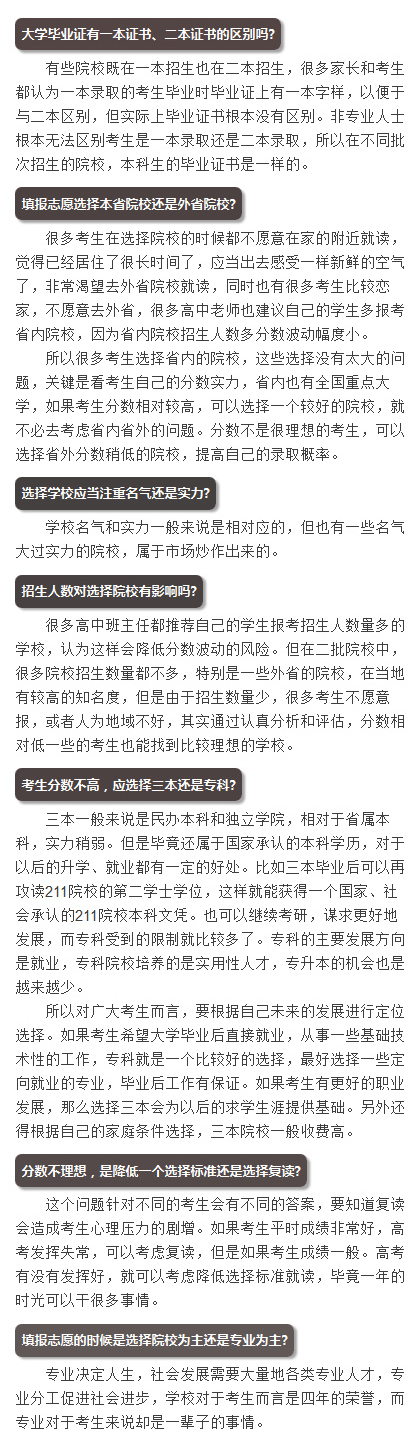 填报志愿选大学常见典型问题汇总解答